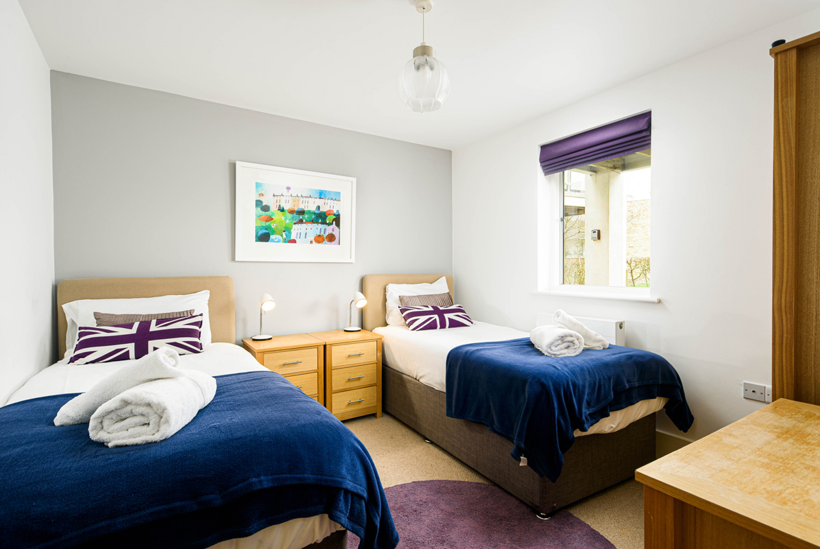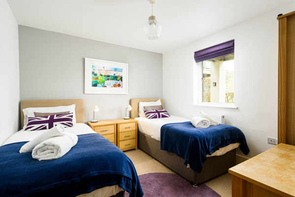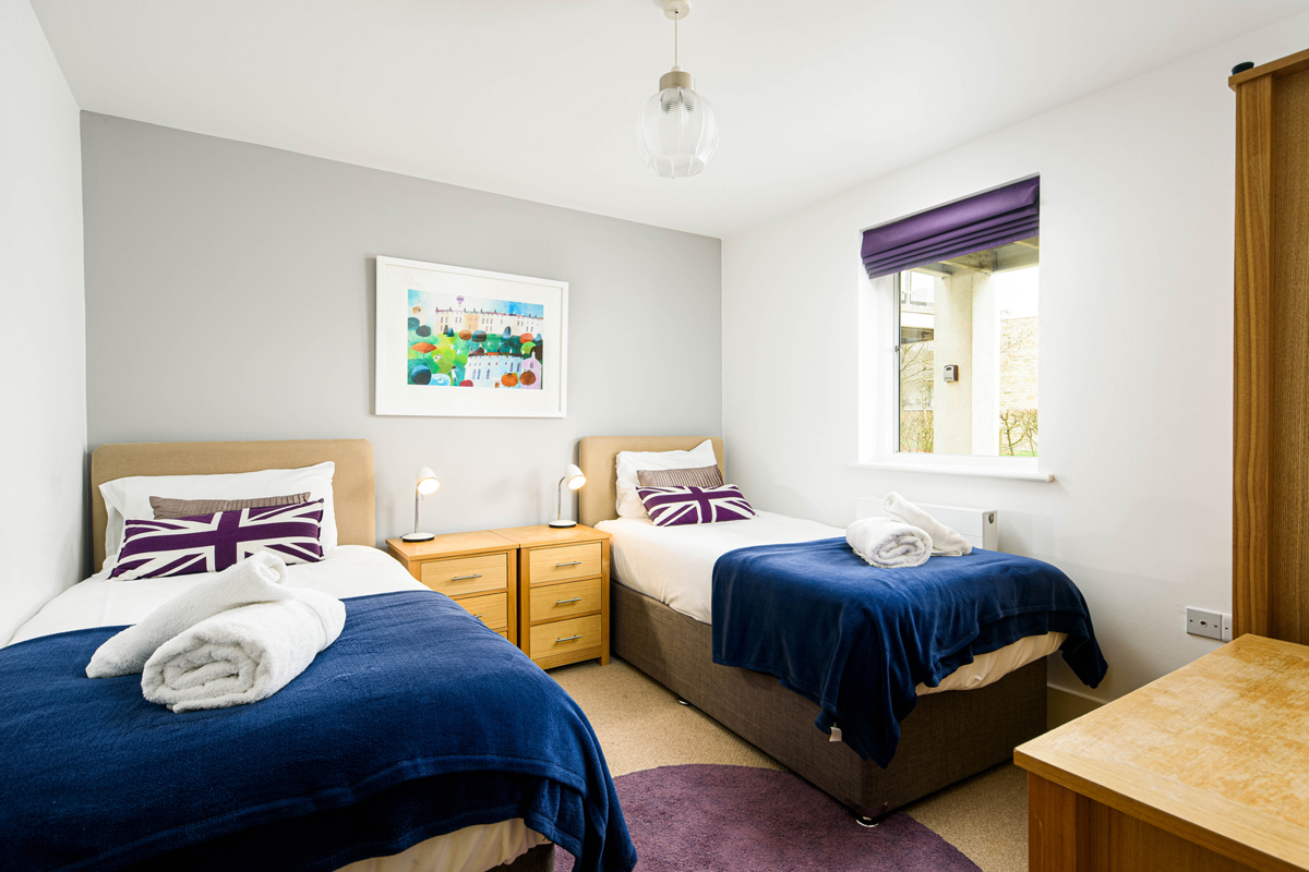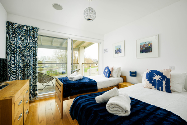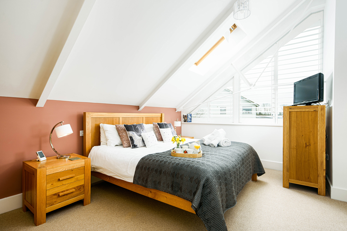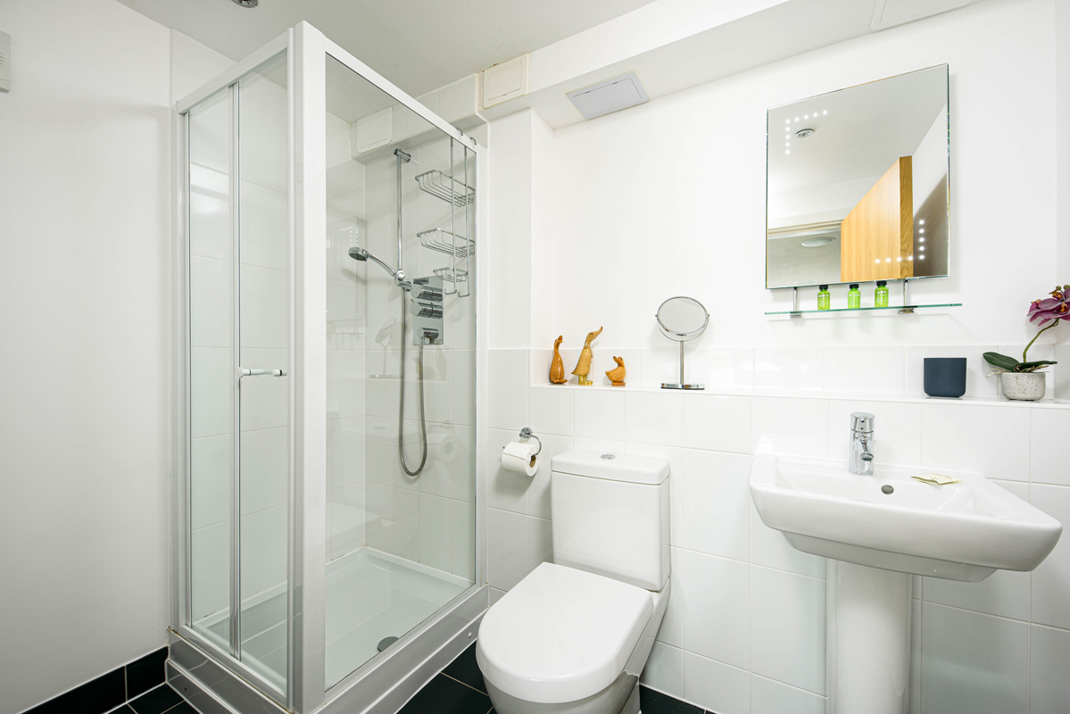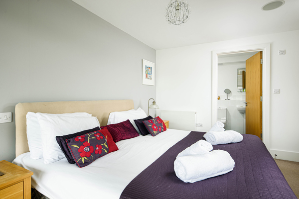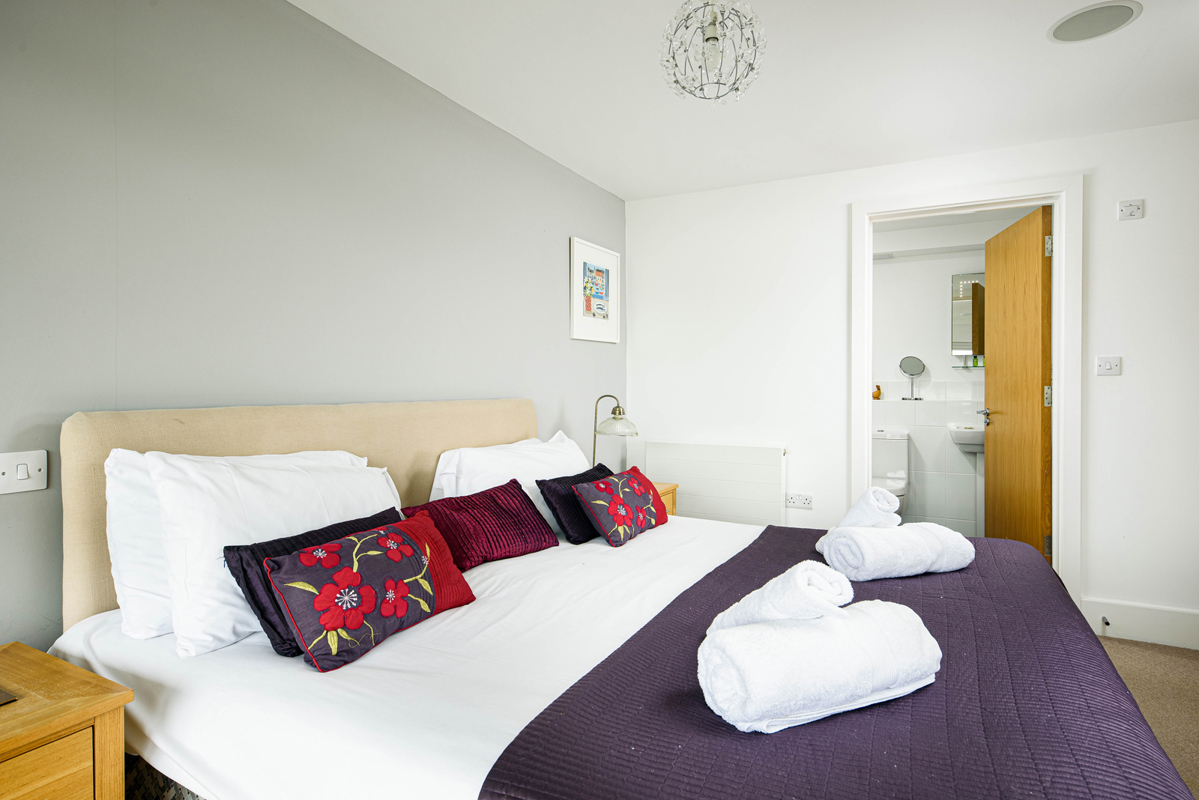 One bedroom boasts a double bed, while the other offers a king-size escape with the convenience of an ensuite shower room.