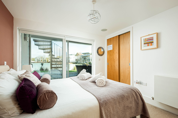 Step through the door into the ground floor, awash with light, where an inviting sleeping area greets you.