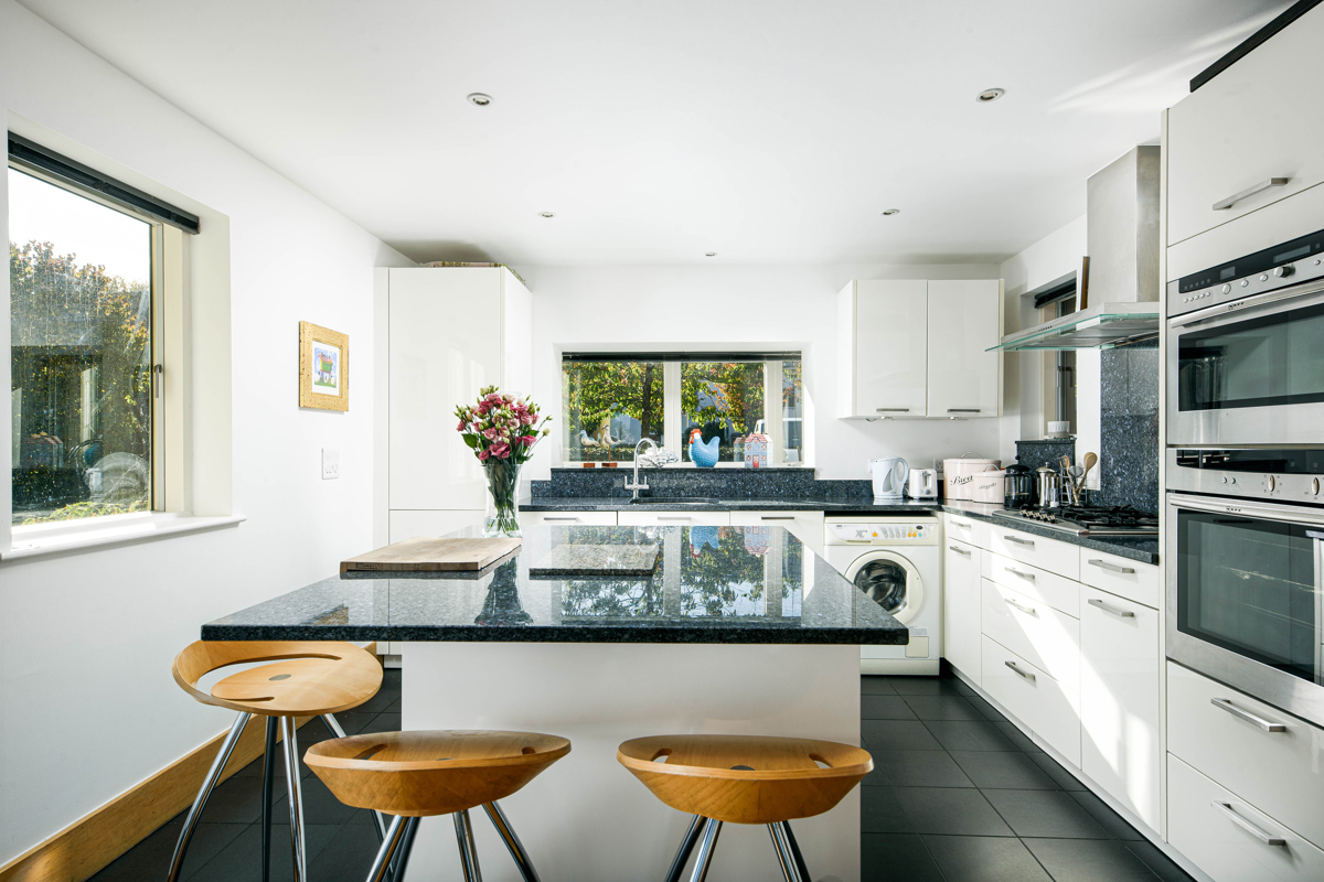 Inside, the spacious dining area features a dining table for 10 that unites the lounge and kitchen. With a practical and modern layout, the kitchen island forms a wonderful communal place to gather and cook with family and friends after a day adventuring in nature. Equipped with a front loading washing machine, integrated fridge freezer and NEFF appliances such as an oven, gas cooktop and dishwasher, this kitchen was designed with family and entertaining in mind.