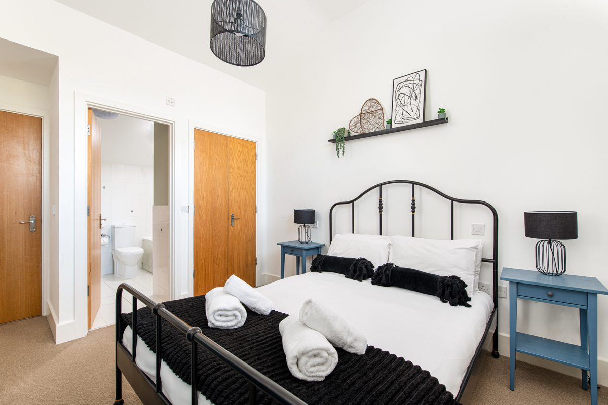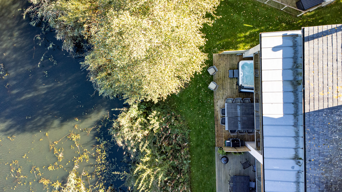 As you enter the ground floor you will discover an open plan lounge, dining and kitchen area, the perfect spot for your family and friends to hang out. The kitchen comes fitted with an oven, hob, microwave, toaster, fridge freezer and washing machine. The dining table seats up to 12, and the lounge has 3 sofas, a smart TV and benefits from a log burner which offers a cosy setting in the winter months. The lounge opens out onto a back decking with views over Clearwater lake. Here you will find an outdoor dining table and chairs for 12 and the bonus addition of a hot tub (Not available on the 1st night). There is also a w/c on the ground floor.