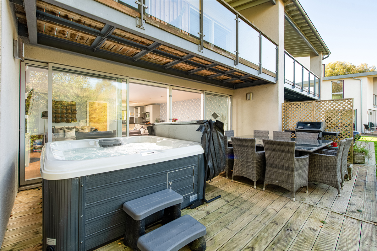 On the ground floor back decking you will be able to kick back and relax in the hot tub or enjoy dining outside. The property has a gas BBQ.