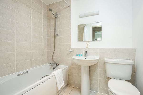 The first of the bedrooms is a comfortable double bedroom with a built-in wardrobe. The second is a cosy bunk bedroom. The third is the master bedroom which comprises a king-size bed, built-in wardrobes, and an en-suite. In addition to the en-suite to the master bedroom, there is also a spacious family bathroom with a bath.