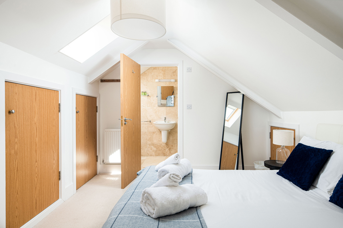 Ascend to the top floor, where the final double bedroom awaits in a light-filled loft, illuminated with thoughtfully placed Velux windows that can also be darkened at night to ensure a peaceful slumber.