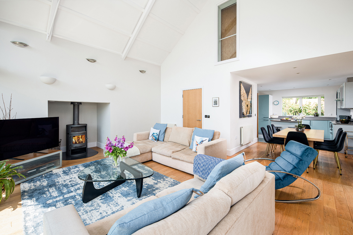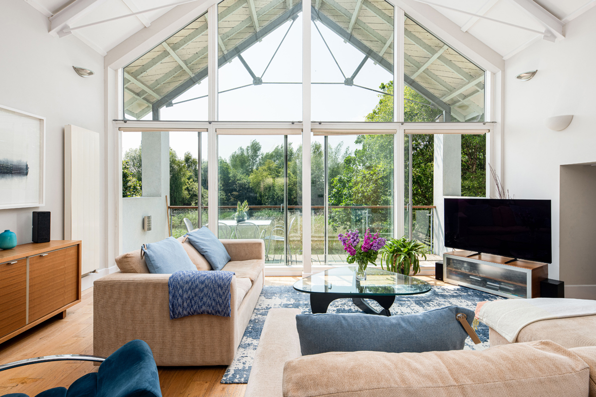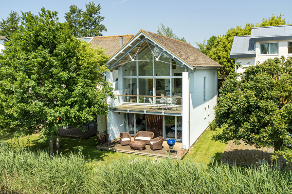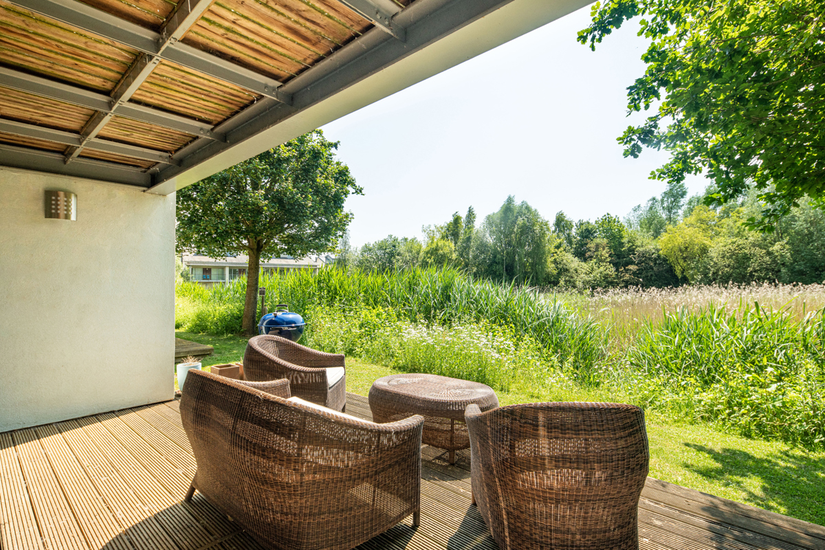 The lounge features a central wood burner for the colder seasons, and an impressive double height vaulted ceiling with full height glazed windows. Slide open the glass doors onto the south facing balcony and pull up a seat to be soothed by the swaying reeds and surrounding mature trees as they create a captivating backdrop. Grab the binoculars (the owners really have thought of all the touches) and let the estate’s abundant wildlife enchant you.