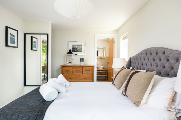 From the master bedroom and sitting area on the ground floor, glass sliding doors open onto a private south facing deck. An inviting wicker lounge set and coal BBQ, overlooking Clearwater Lake and its tranquil surroundings, invites you to bask in nature’s beauty.