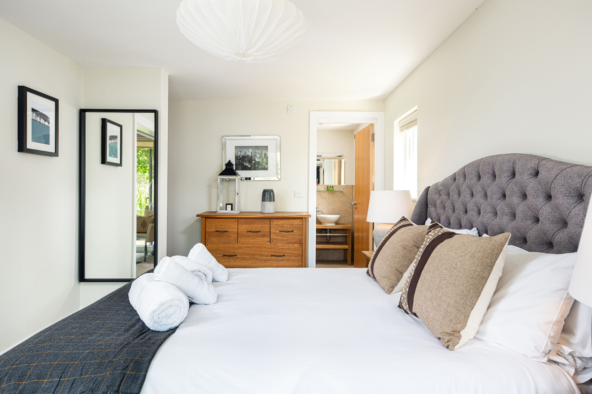 Venture further down the hall to find a master king bedroom that offers not only an en-suite bathroom with shower over bath, but also an adjoining sitting room with an occasional single daybed, that can be used for an additional child or small adult upon request.