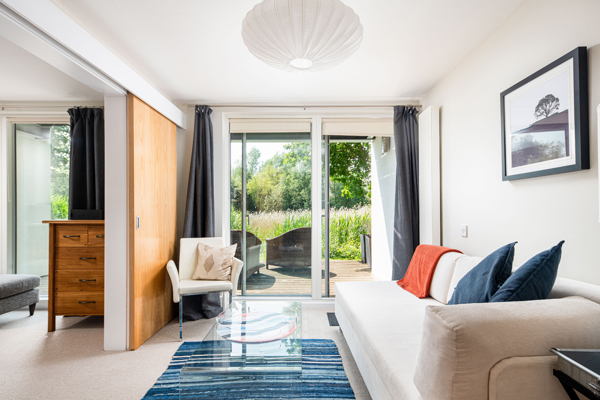 Beyond the deck, be joined by the local duck families as they natter around the lawn and launch onto the lake through a break in the reeds. While the foliage is season dependent, your own direct lake access is a feature of this property. It is important to note that Clearwater Lake is heavily surrounded by reeds and trees and not ideal for paddle boarding all year round. However, you can certainly cast your fishing rod and enjoy the water and picturesque views that are so special at Lower Mill Estate.