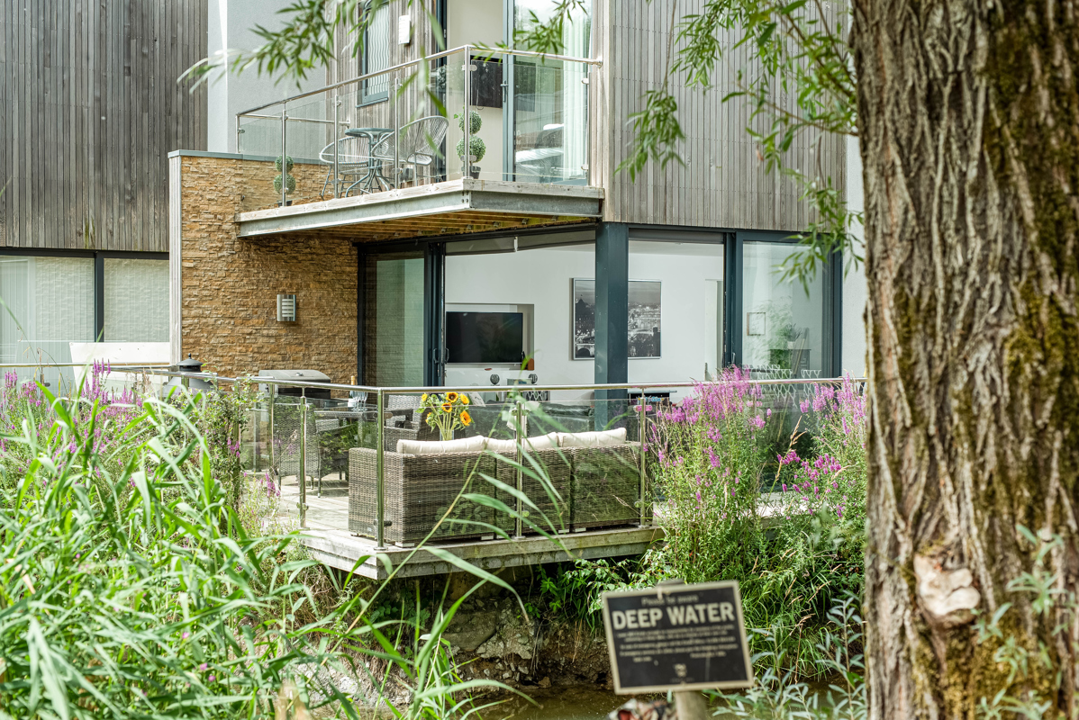 Step into your holiday oasis tucked amongst the reeds in the heart of Lower Mill’s Water Garden. This RIBA award-winning property with ground source heating was designed by architect Andy Ramus and forms part of a small cluster of ten eco-friendly homes surrounding a beautiful water garden teaming with wildlife.
