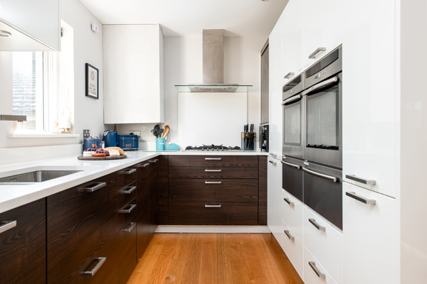 The kitchen is equipped with a double oven complete with warming drawers, gas hob, microwave, and a Nespresso Magimix coffee machine.