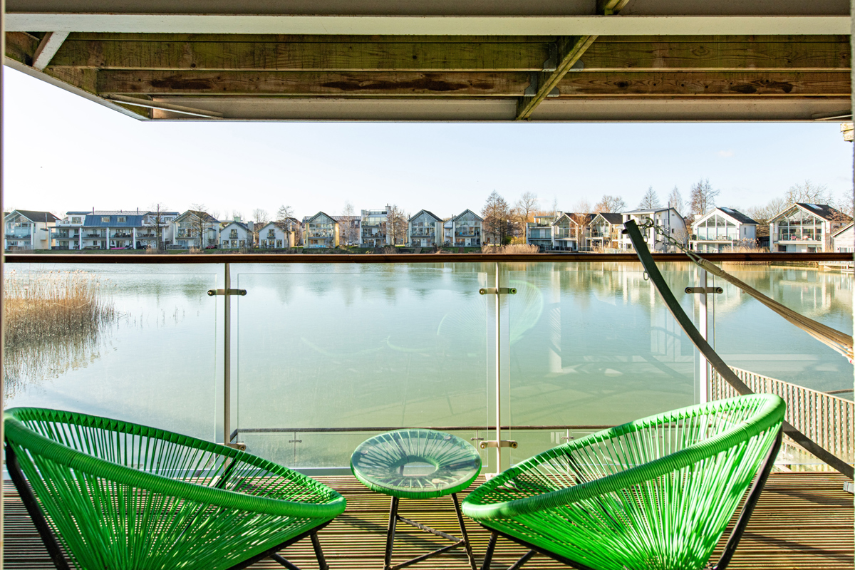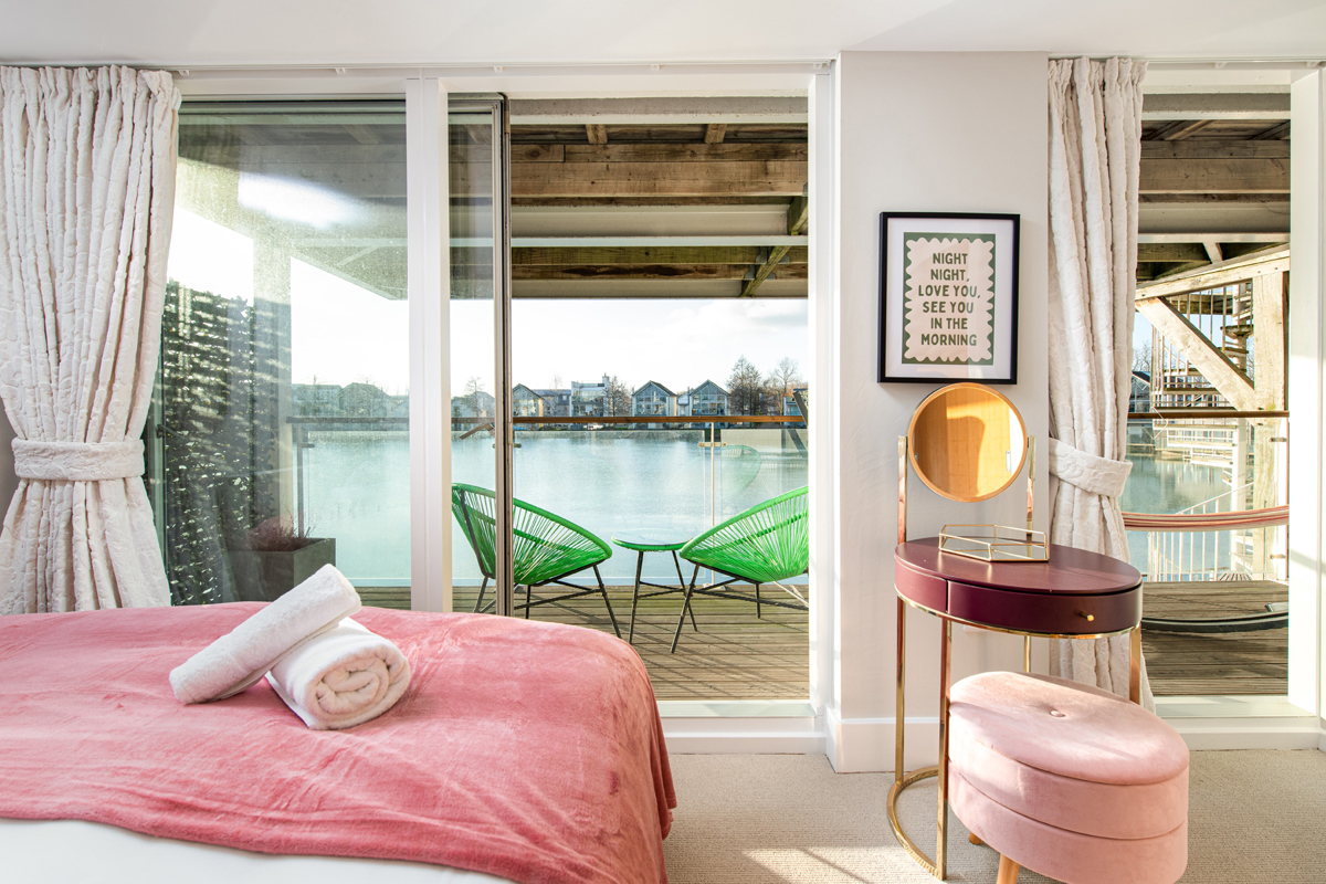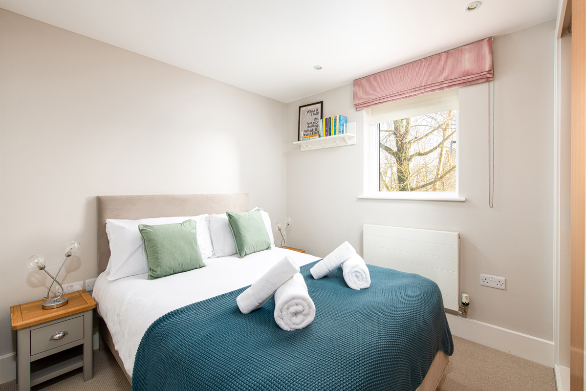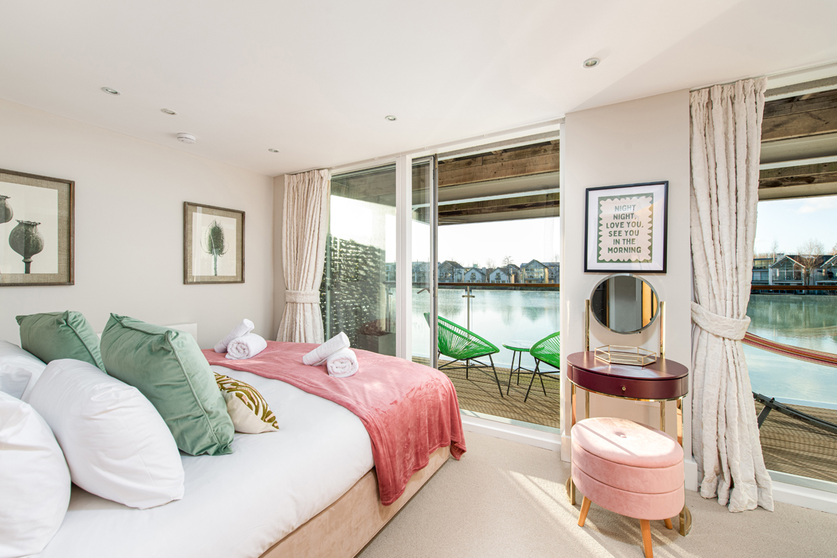 The principal bedroom offers stunning lake views and includes a super-king bed, ensuite shower room, built-in wardrobes, and access to a balcony—perfect for enjoying the scenery.