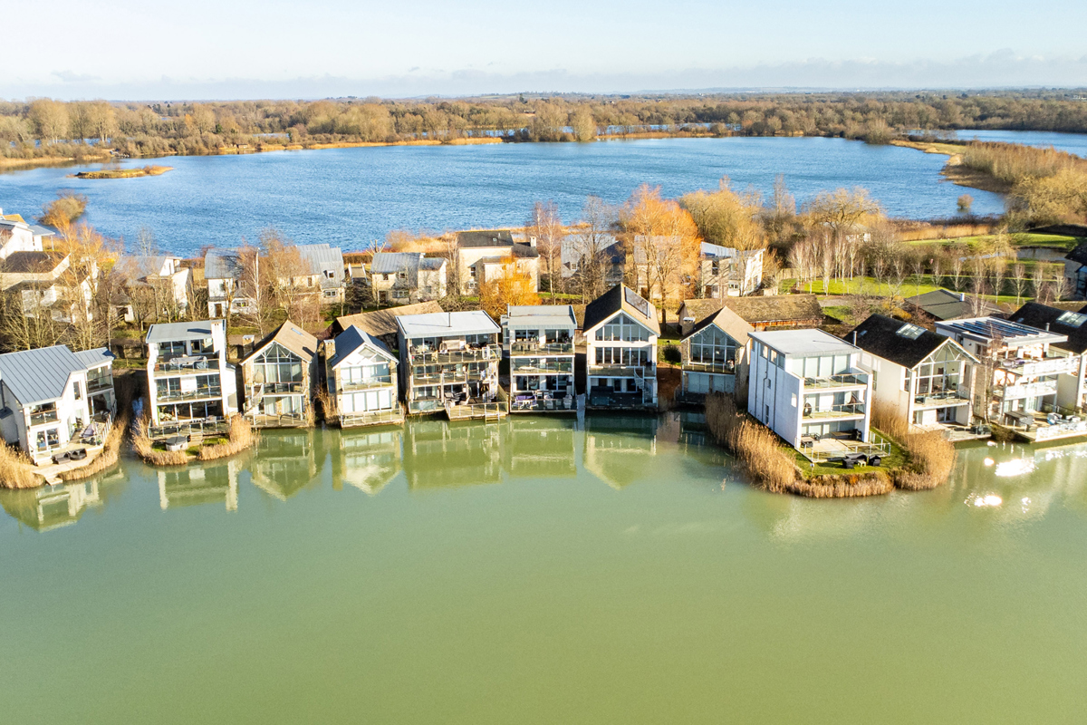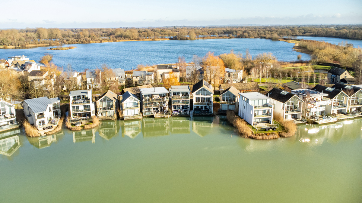 From the main entrance where the security hut is positioned, drive through the gate and bear left, drive through the car park ahead and exit right when you get to a four-way crossroads for Clearwater and Howells Mere properties.