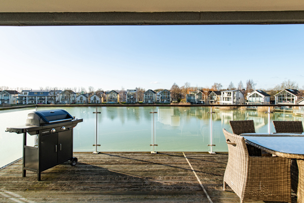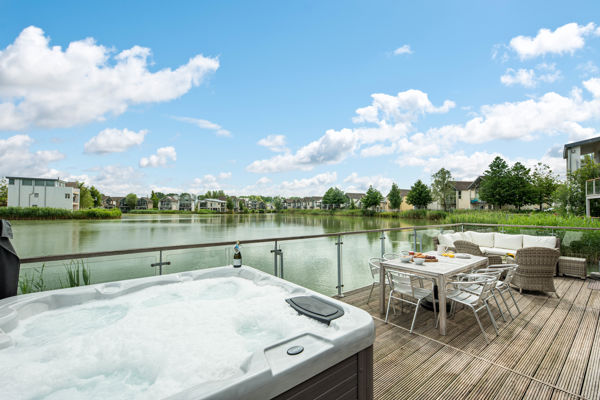 The outside extended deck has ample seating for all the family to enjoy right by the waters edge.