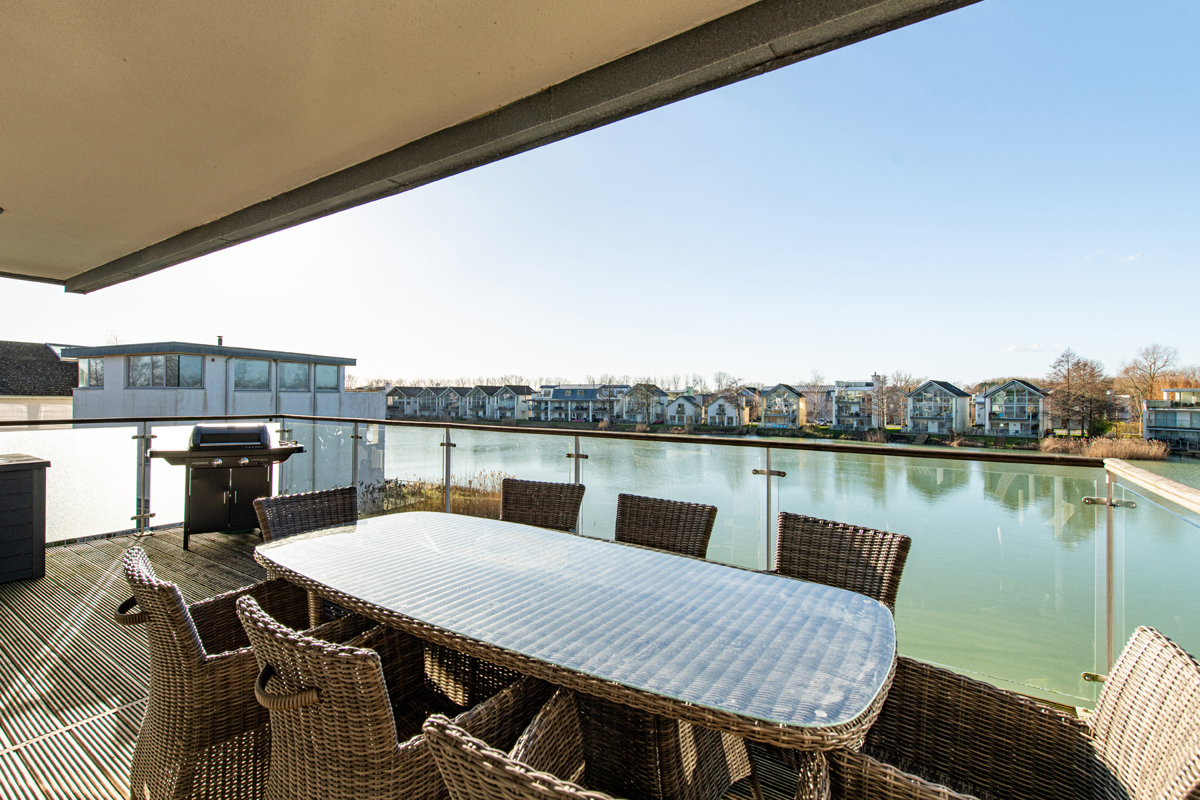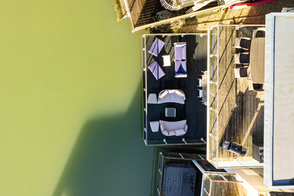 The extended lower outdoor deck offers plenty of seating for the whole family to enjoy, right at the water's edge.