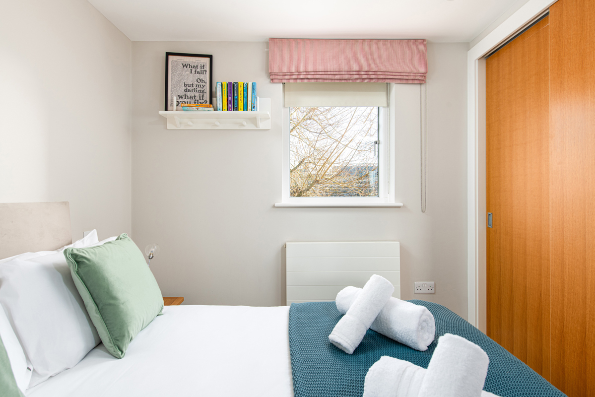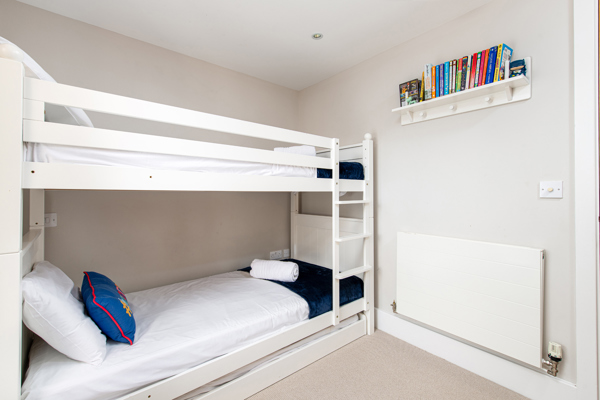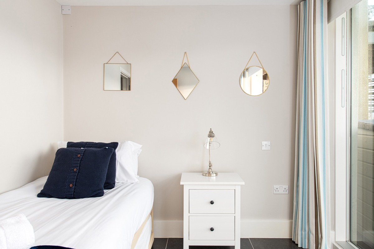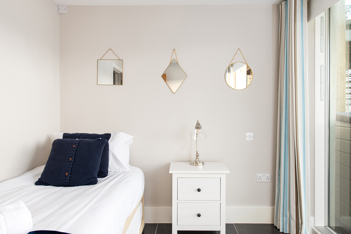 Further down the hall, you'll find a single bedroom, also with access to the decking area. This room also has a trunk bed that can be made upon request when booking.