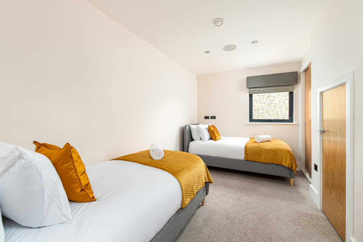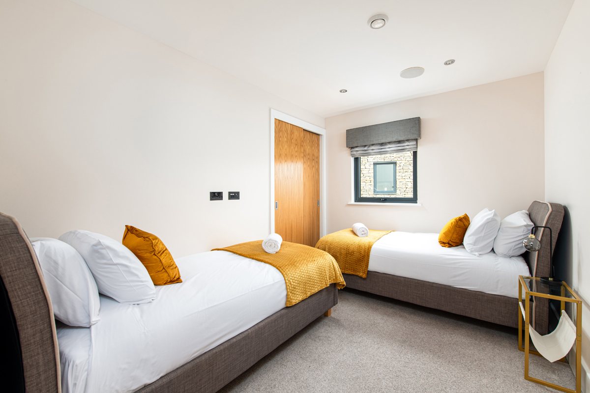 Another twin bedroom with built in storage.