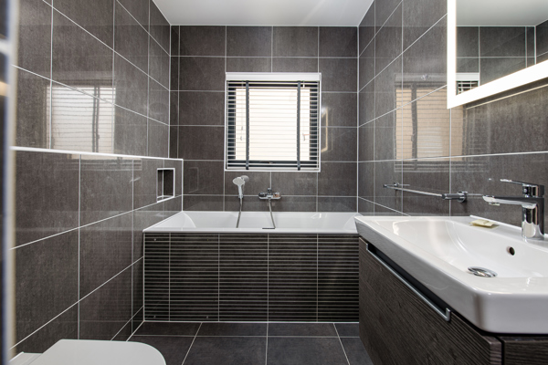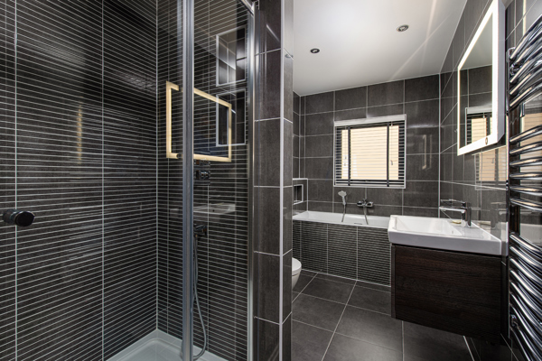 A family bathroom offering both a refreshing shower, and a deep indulgent bathtub.