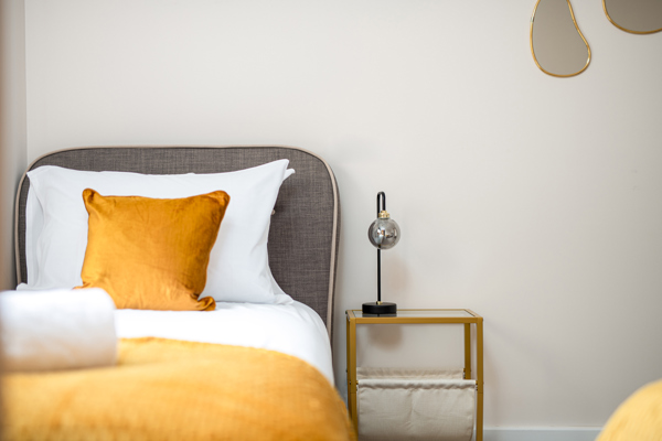 At the end of the hall is the king bedroom, boasting stunning views over Minety Lake to the south. This luxurious retreat features a dressing table, ensuite bathroom with separate shower, and a deep relaxing bathtub to unwind in after a day adventuring on Lower Mill’s 450-acre nature reserve. You’ll also have the privilege of your own balcony, perfect for morning coffee, or stargazing.