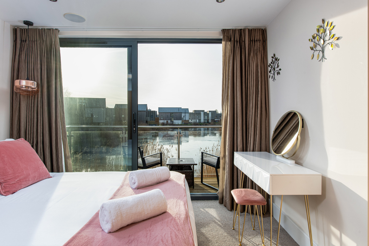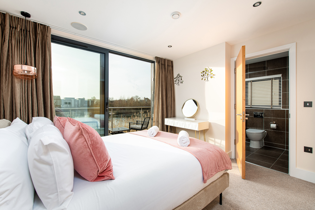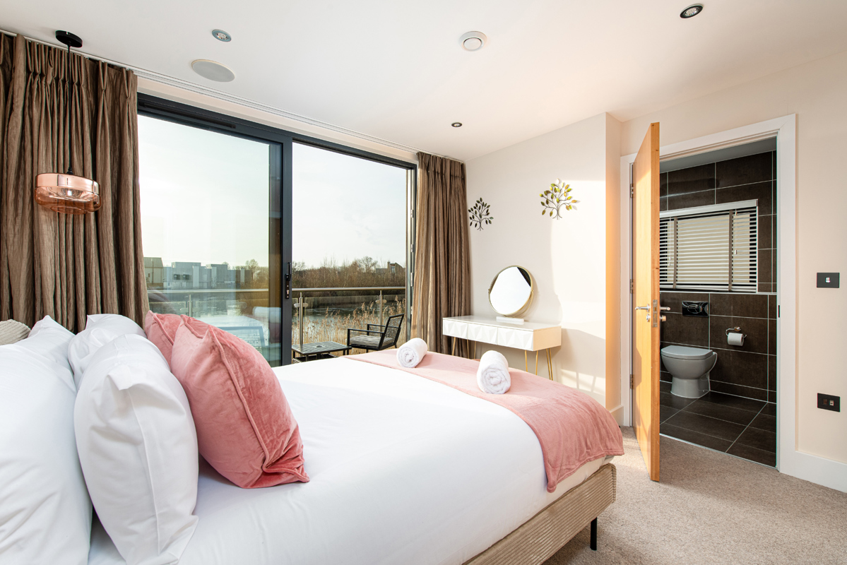 Double bedroom built in wardrobe, ensuite shower room and your own balcony with stunning view across Spinney Lake.