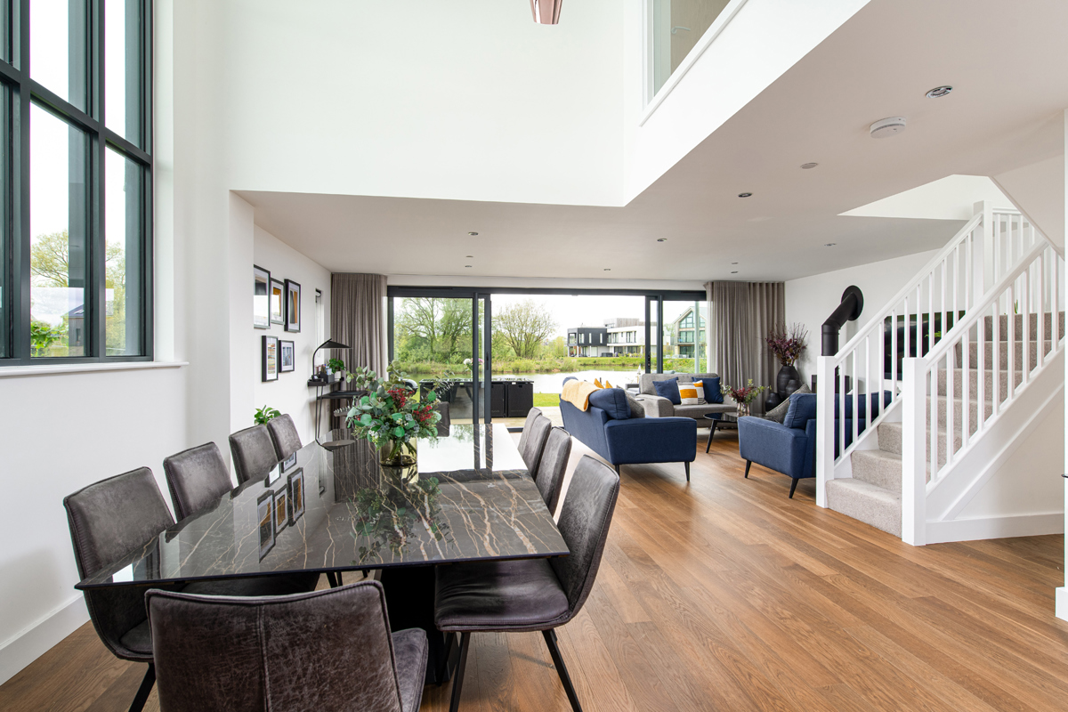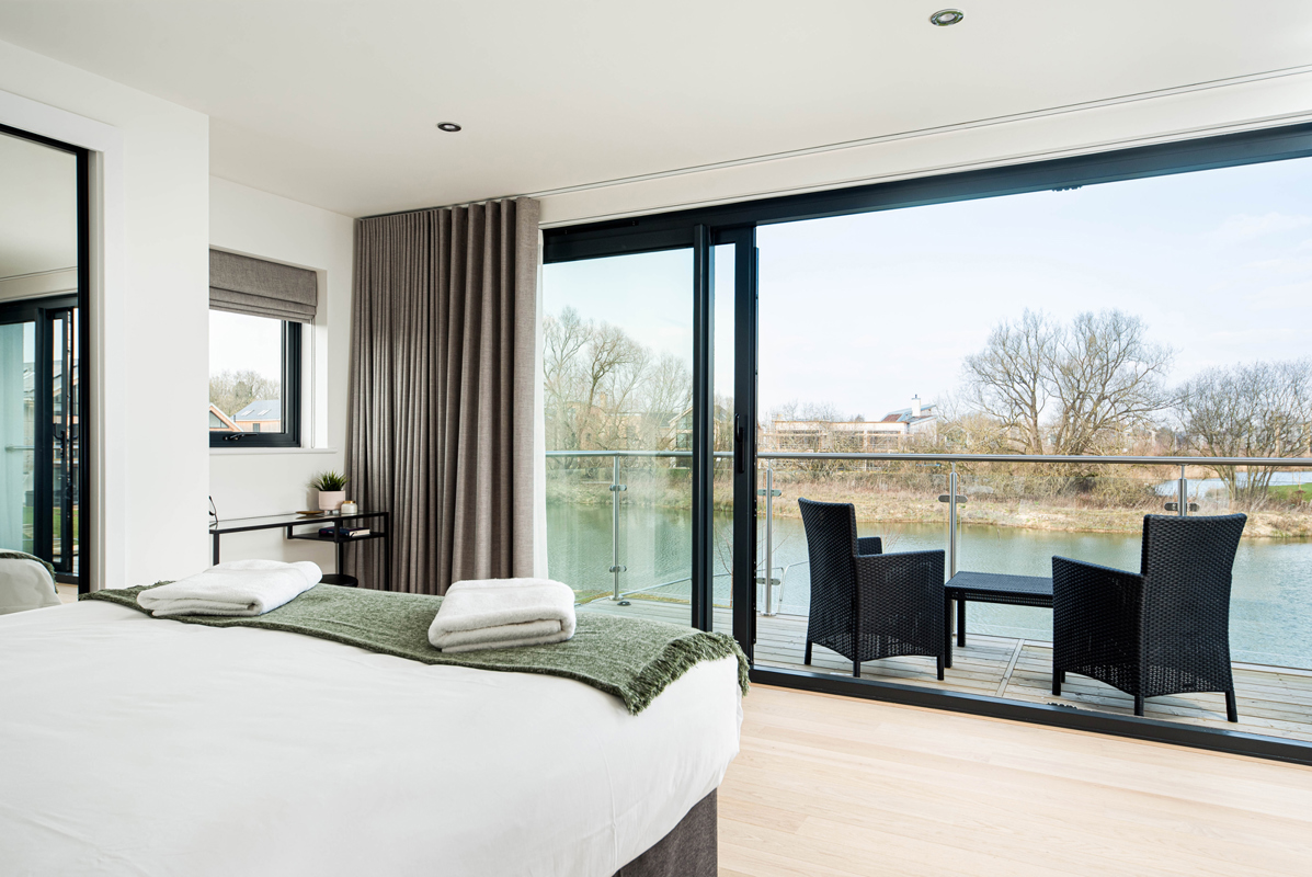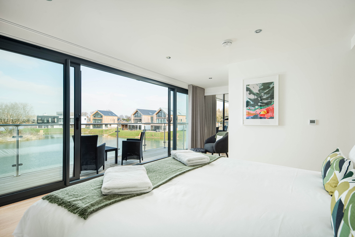 On the first floor, you will find three of the five bedrooms. The master super king bedroom has an ensuite with large walk in shower. One of the best features of the room is the floor to ceiling glass sliding doors that allow you to access your own private balcony with views of Minety Lake.
