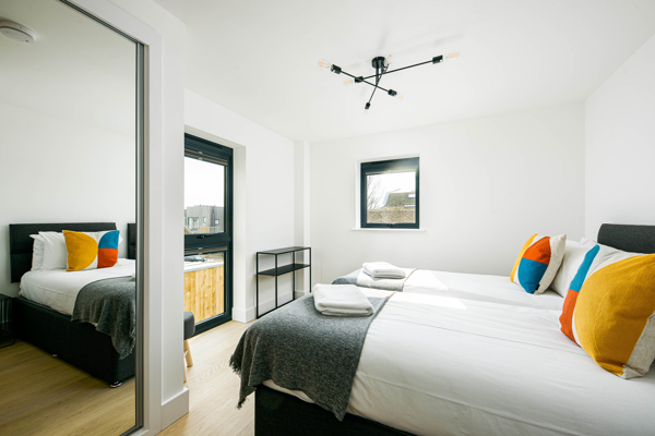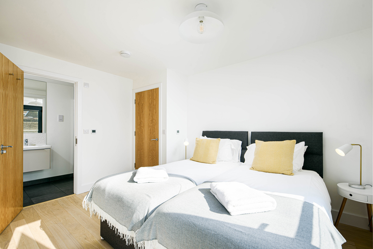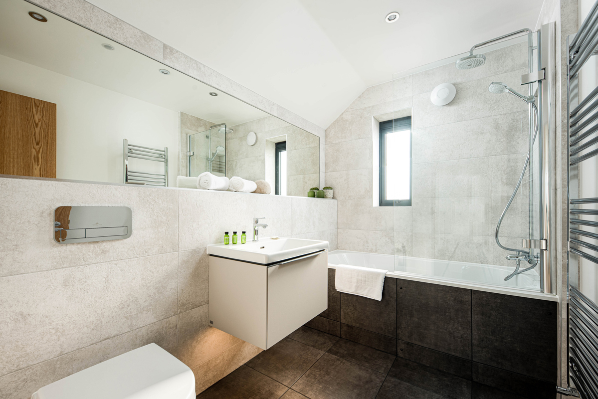 The further two bedrooms on the first floor are twin bedrooms that can be connected on request to make a super king. Please speak to a member of our team after booking to arrange this. One of the two twin rooms has an ensuite with standing shower.