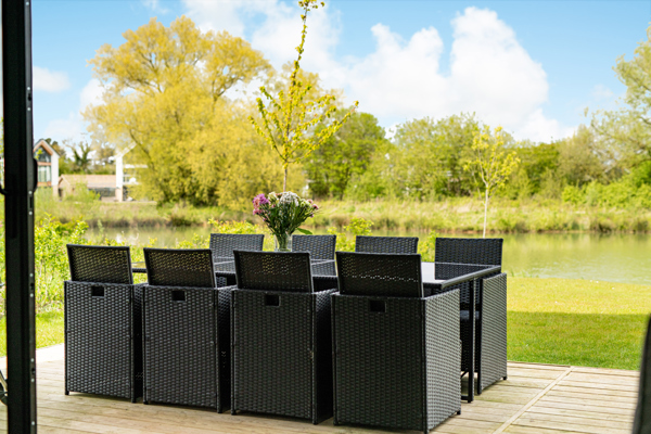 To the back of the property there is corner seating overlooking the garden and lake, with a charcoal BBQ and outdoor dining table for you to make the most of the Great British Summer. Your own private jetty gives you access out onto Minety Lake. Please note that in the winter months the lakes are closed to guests and owners due to the low temperatures.