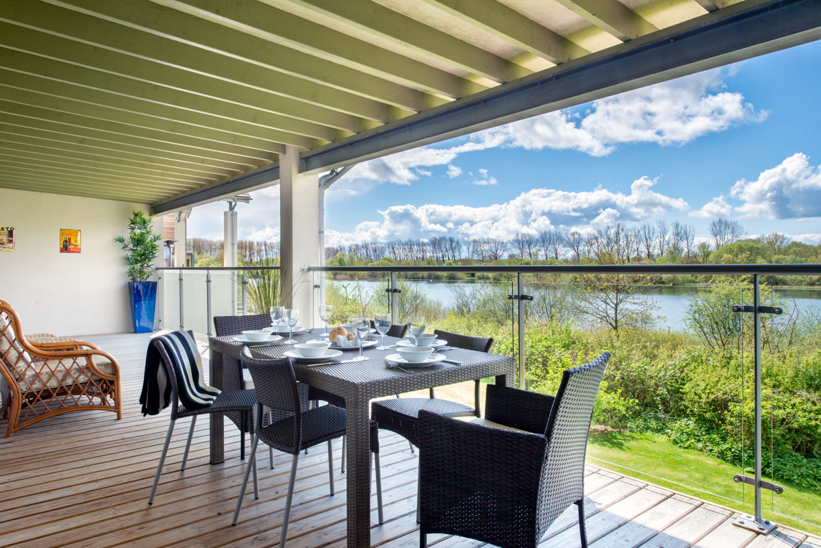 Pochard has a 30ft private balcony decking facing west and overlooking Swillbrook Lake and Nature Reserve. Dining for four is provided for your comfort.