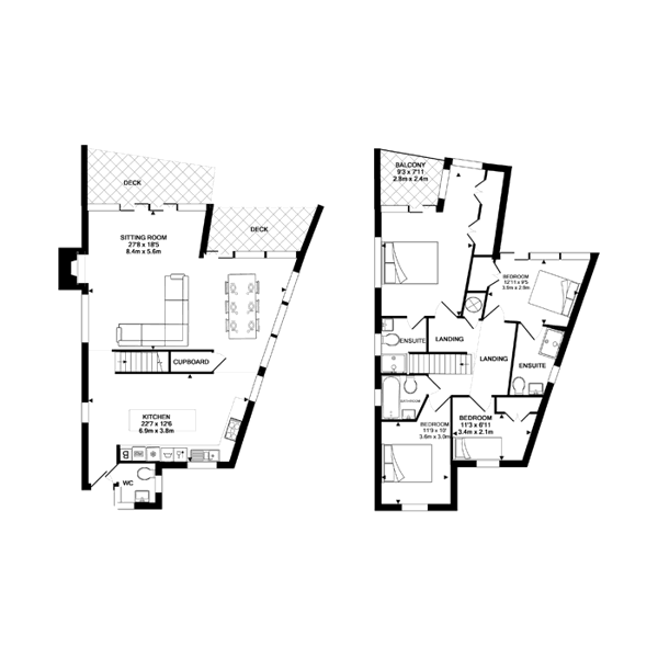 The master bedroom overlooks Somerford Lagoon and benefits from an ensuite bathroom. The second bedroom, also on the first floor, has its own private balcony and ensuite. The third bedroom is a very spacious double and the fourth bedroom is a single. There is also a family bathroom with a bath and attached shower.