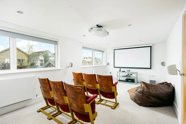 The showstopper of this property? A cinematic escape! The dedicated cinema room boasts a Sony projector and six vintage red velvet cinema chairs. Plenty of space for comfy bean bags on the floor for family movie nights, and there’s even a Blu-Ray DVD player, so don’t forget to bring your favourite DVDs.