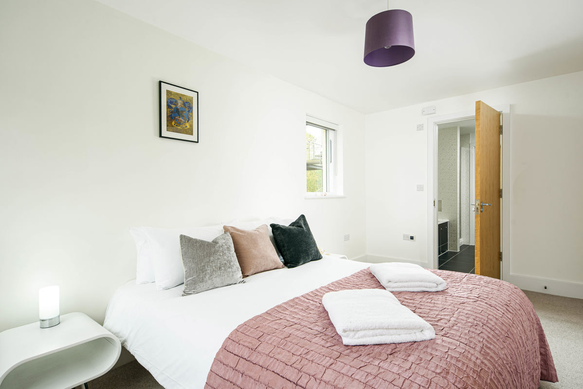 Ascending the carpeted stairs to an impressive master king bedroom, a nature inspired retreat with a private balcony for savouring tree-lined vistas and glimpses of Swillbrook Lake. This bedroom comes complete with ensuite shower room, built-in-robes and a desk by the window for catching up on emails or penning inspiring postcards from your Lower Mill escape.