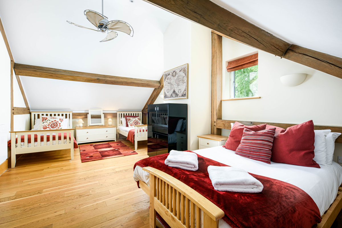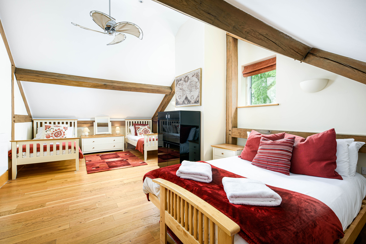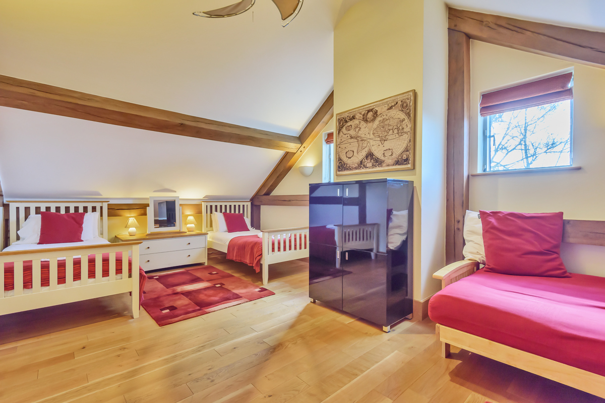The first floor accommodates the master en-suite super-king bedroom as well as a further king bedroom, bunk bedroom, and family bathroom.