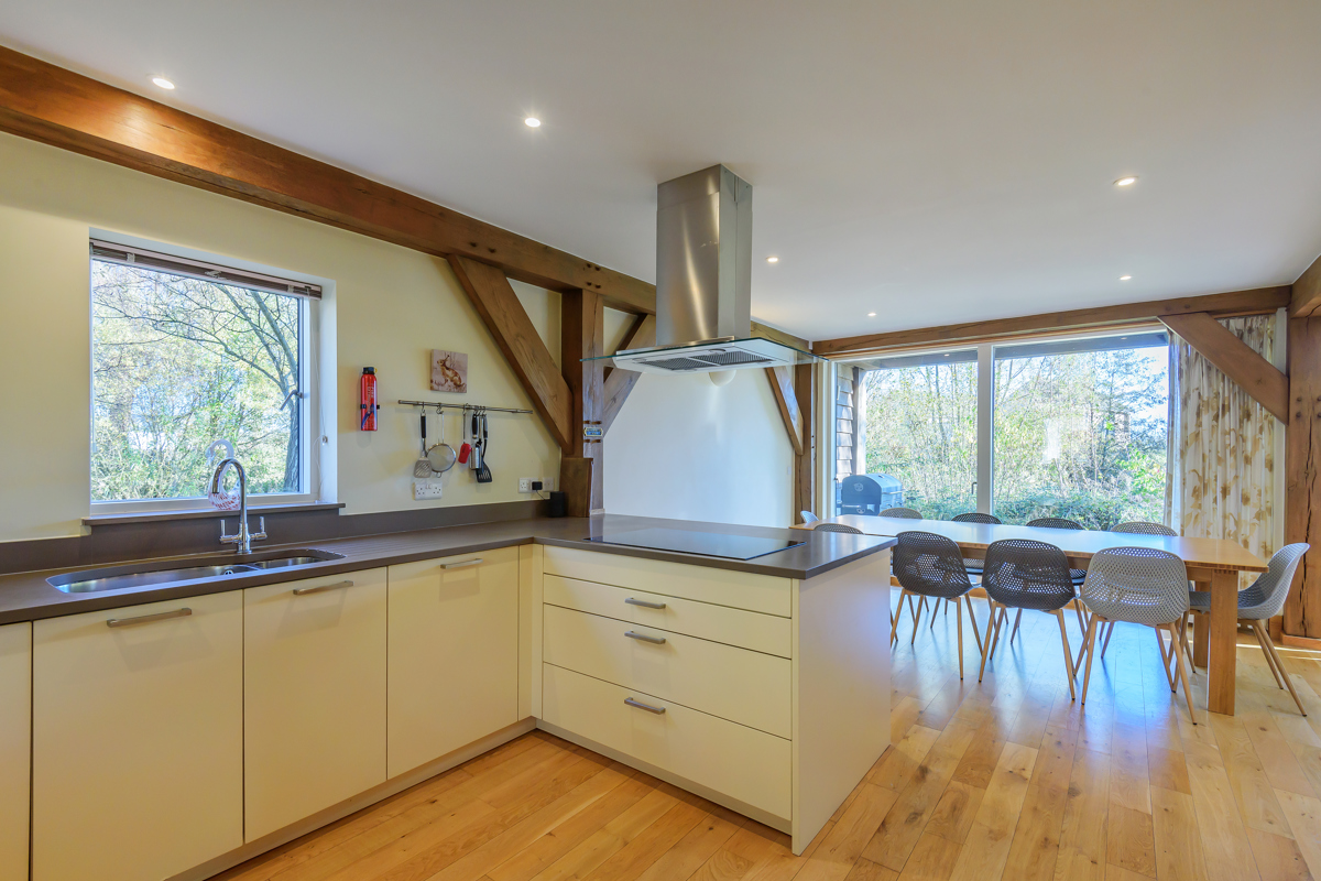 The kitchen offers a good range of wall and base cupboard units with many built-in appliances including an induction hob, double oven/combination microwave, fridge/freezer, washer/dryer, and dishwasher. Fully equipped for 10-12 guests. There is also a Nespresso Vertuo coffee machine.