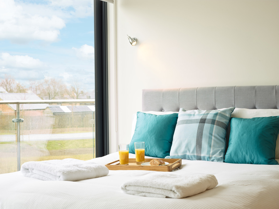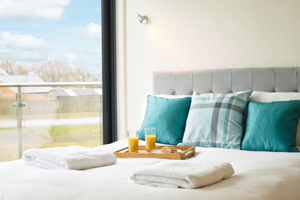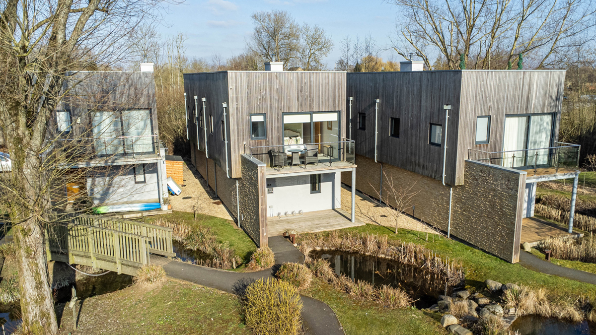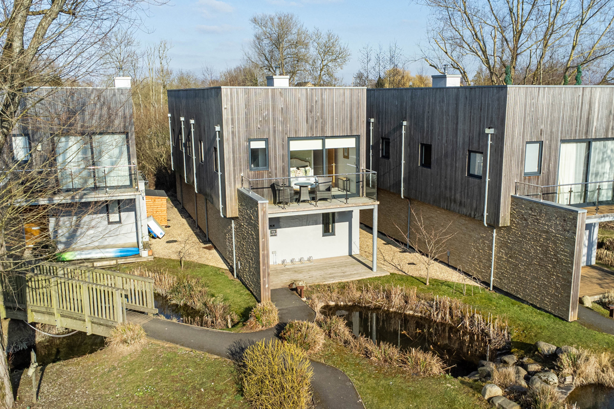 In the corner of the car park you will see a walking path leading into the middle of the Water Garden properties, please follow this path and you will find your property on the left-hand side with a sign saying Teal Lodge next to the front door.