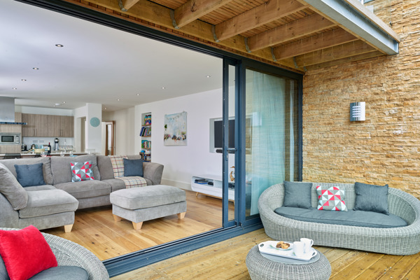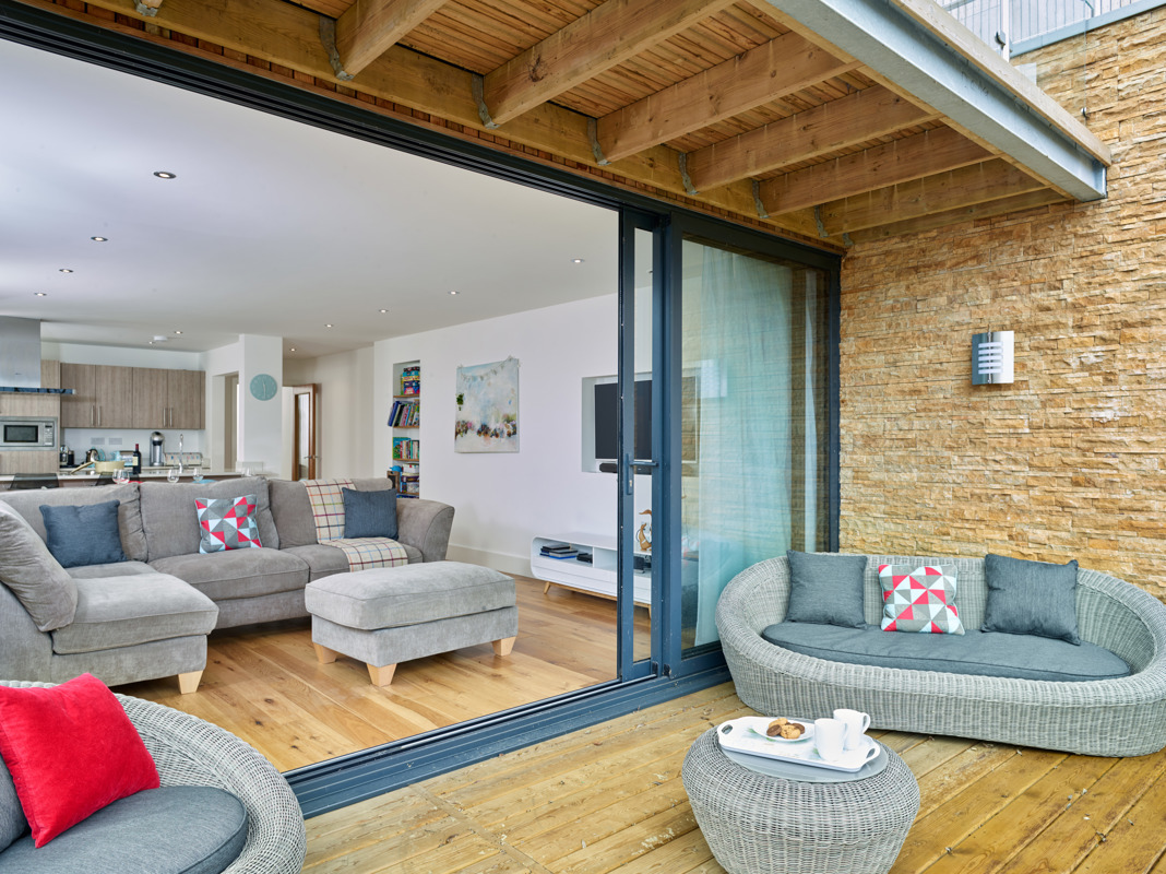 Beautifully appointed accommodation provides open plan living/dining and kitchen with built-in double oven, microwave, fridge/freezer, induction hob, and Nespresso coffee machine Breakfast bar to dining side with two bar stools. Dining for eight. Sofa seating for five guests with matching footstool. Wood-burning stove. Assortment of games and puzzles. Wall-mounted TV, Blu-ray disc player. Access to the outside balcony with garden furniture and BBQ.
