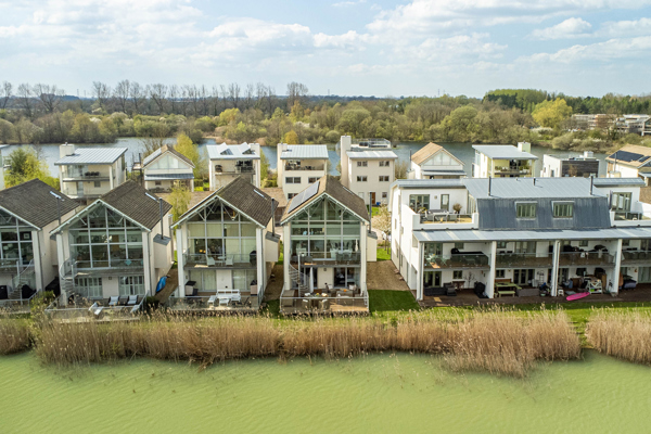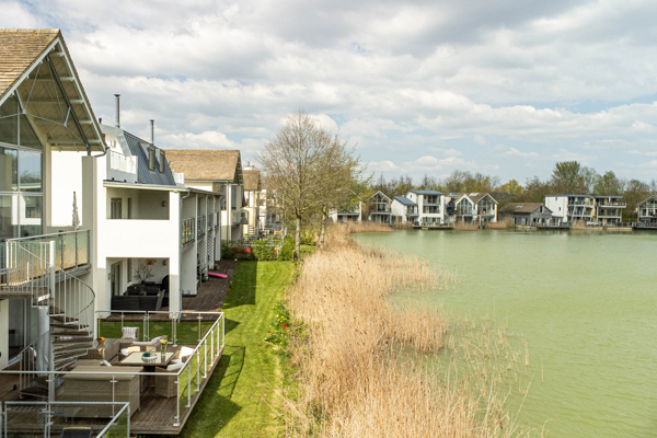 From the main entrance where the security hut is positioned, drive through the gate and bear left, drive through the car park ahead, and exit right when you get to a four-way crossroads for Clearwater and Howell's Mere properties.