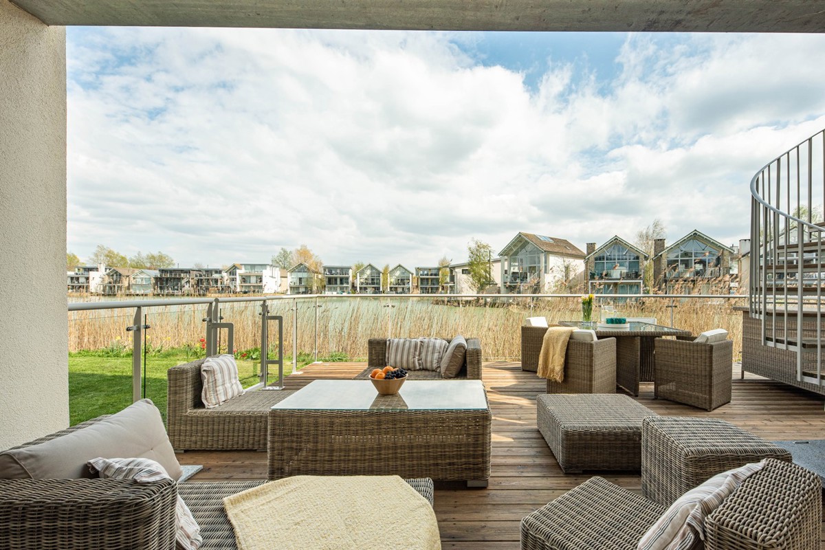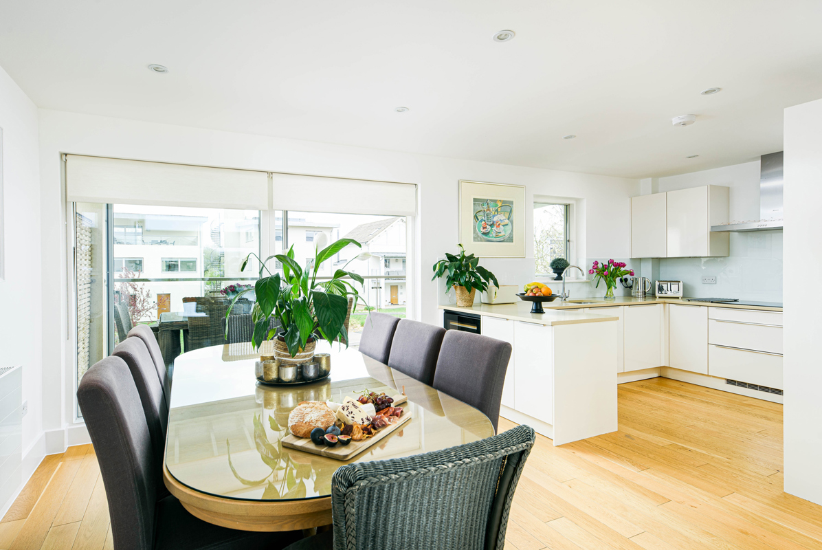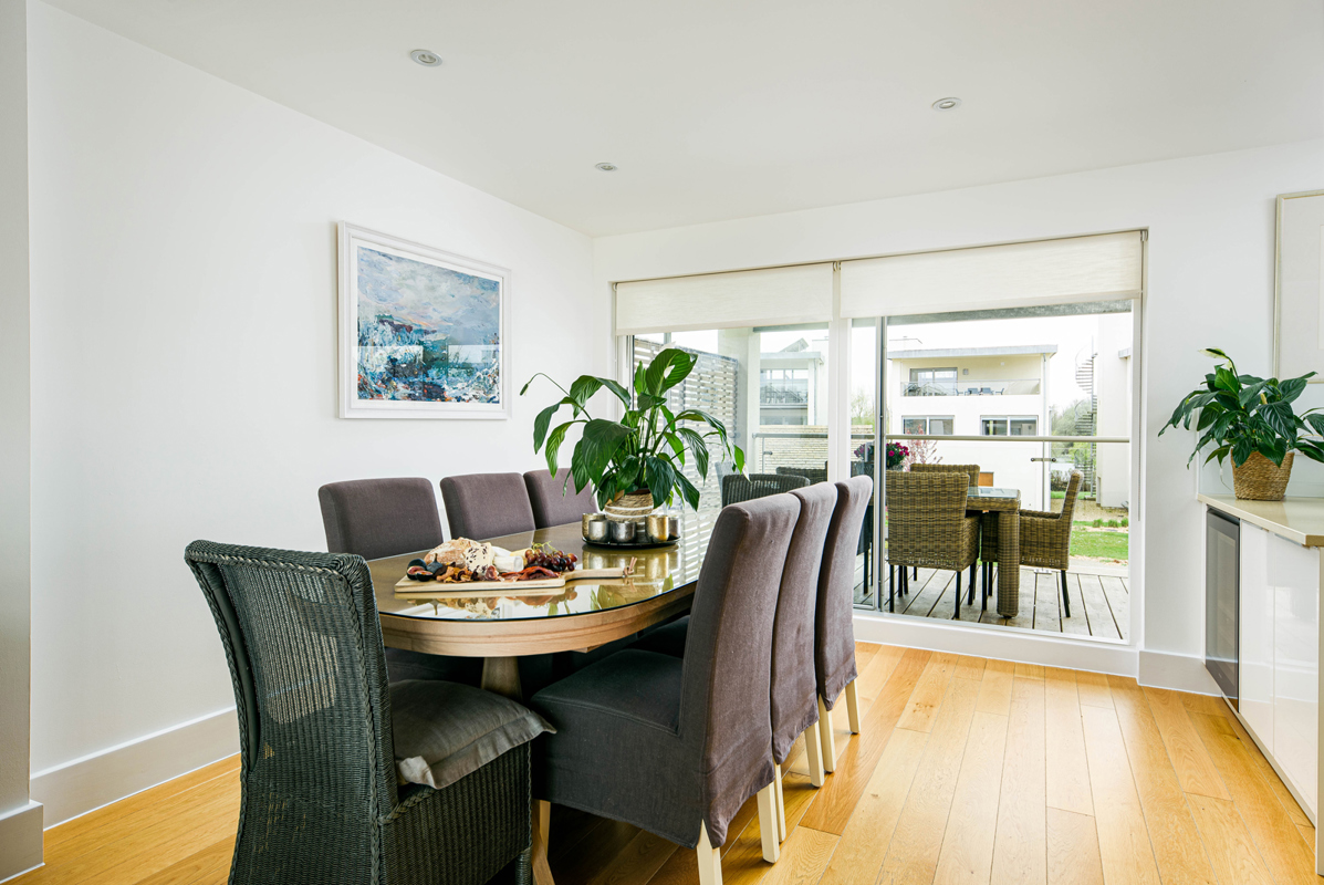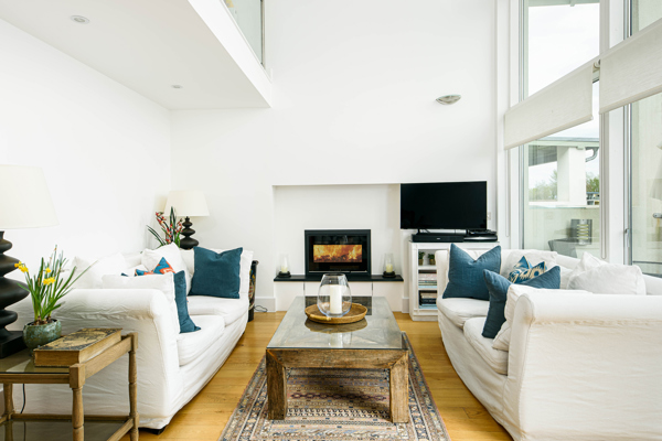 On the first floor, you will find the main living area, with a spacious open-plan kitchen, lounge, and dining area that opens out onto a balcony to the front and back of the property. There is dining for 8 both inside and outside of the property, with a dining table and seating area on the front balcony.
