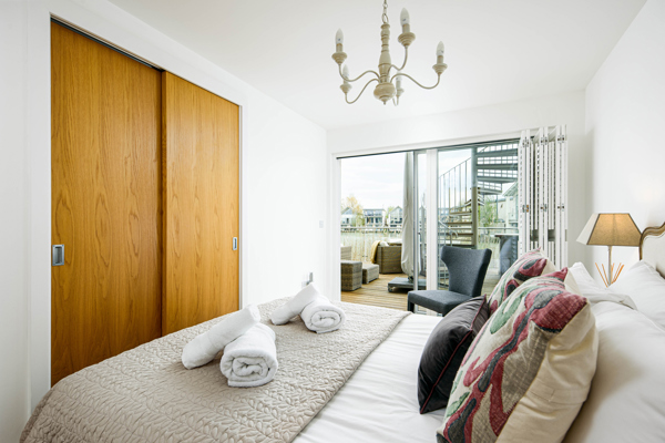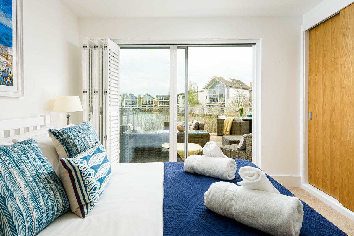 As you enter The Beeches you come to the first three bedrooms on the ground floor, two of which open out onto the back decking area that overlooks Howell's Mere Lake.