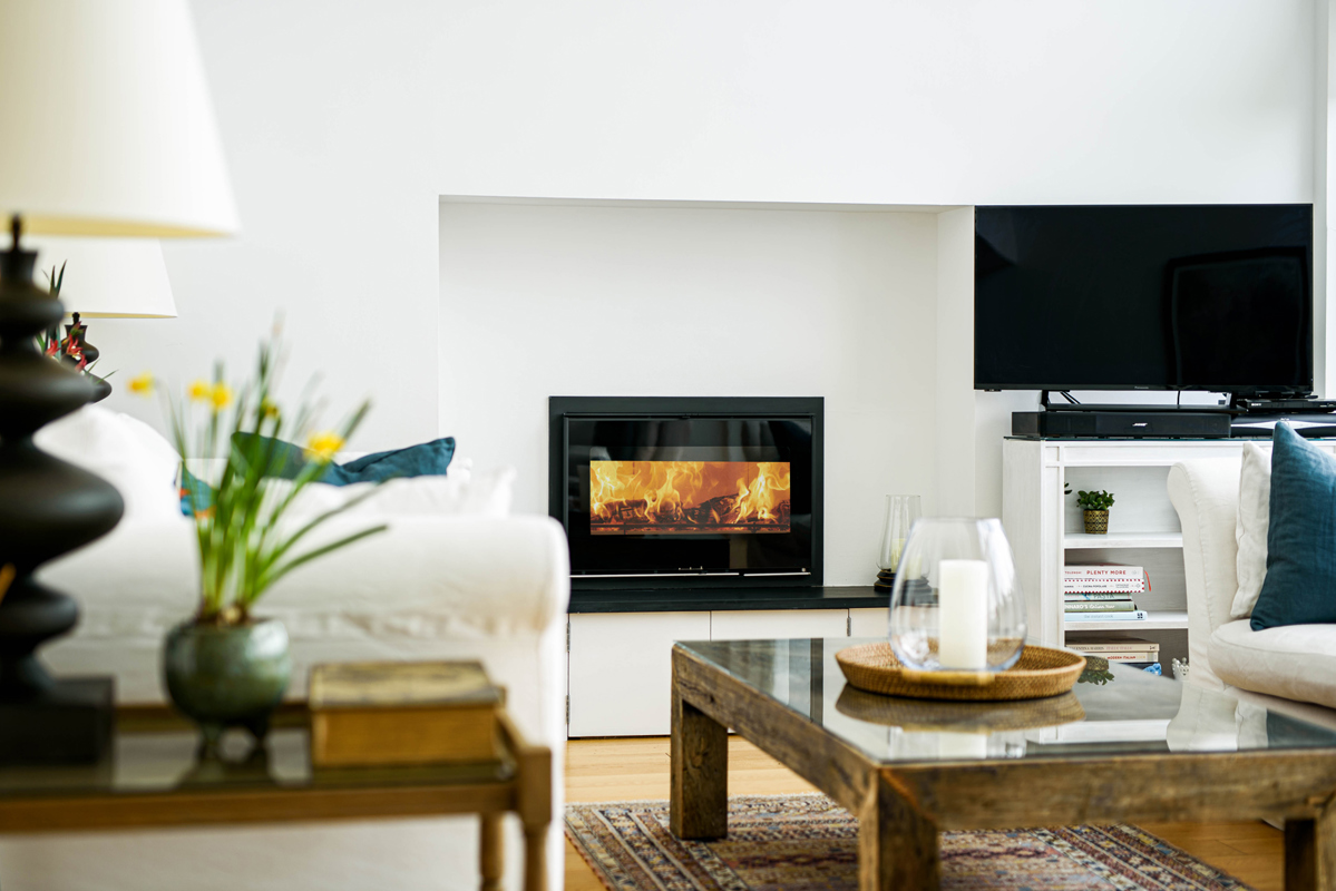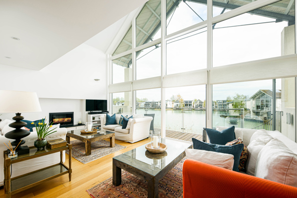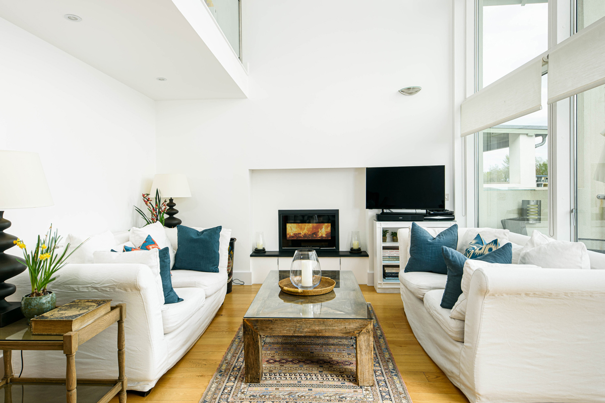 The lounge area is equipped with a TV with Netflix and Apple TV and a wood fire place and overlooks the back of the property where the property's best views are found. The floor-to-ceiling windows in the lounge allow you to sit back and enjoy the views over Howell's Mere Lake.