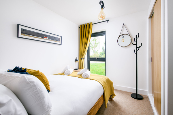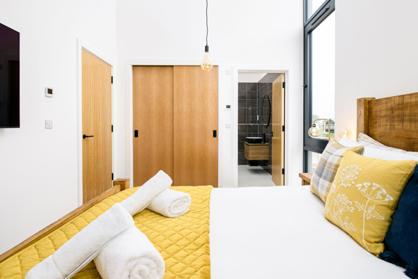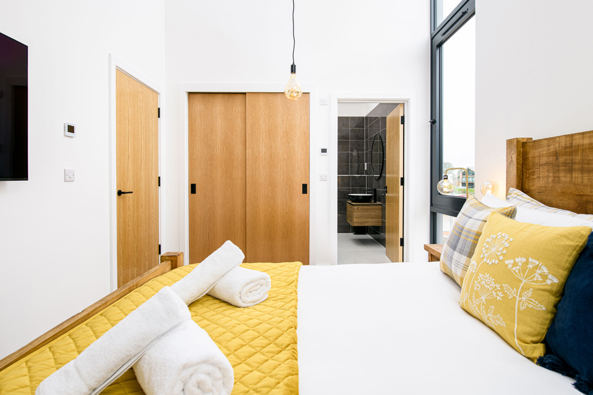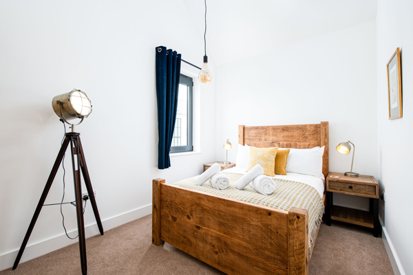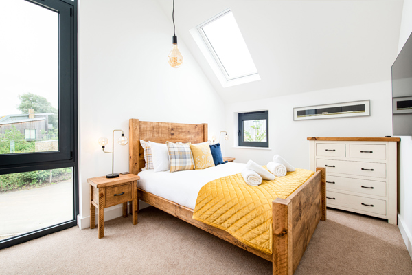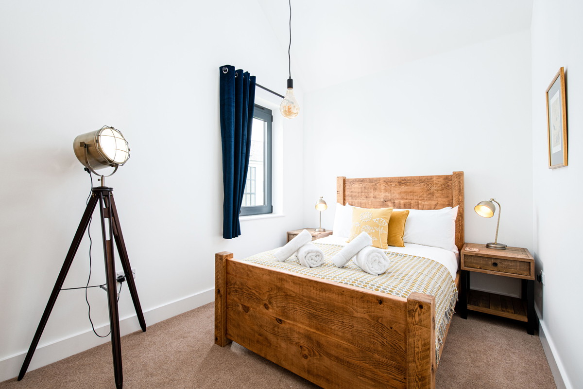 Here you will find the other three bedrooms at The Cotswold Light House all kitted out with lovely wooden beds and side tables. All four bedrooms have their own built-in wardrobes.