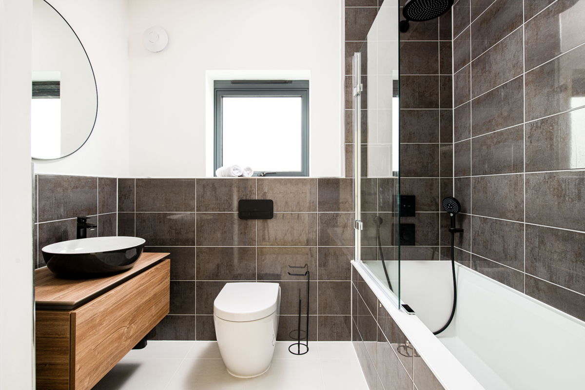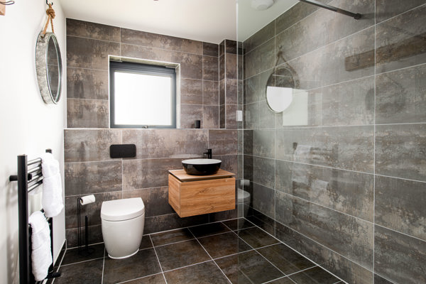 The Cotswold Light House is one of the few properties at Lower Mill to benefit from having a bedroom, bathroom, kitchen, and lounge all on the ground floor. The bedroom has a beautiful wooden double bed and is equipped with a smart TV allowing you to log into your own Netflix, Prime and Disney accounts. With a built-in wardrobe, there is also plenty of room to store your belongings. Just across the corridor is the downstairs bathroom, with a walk-in shower and a toilet.