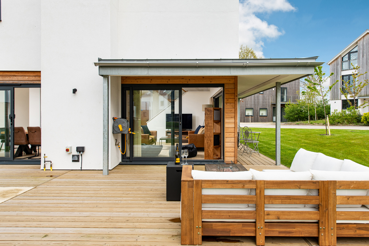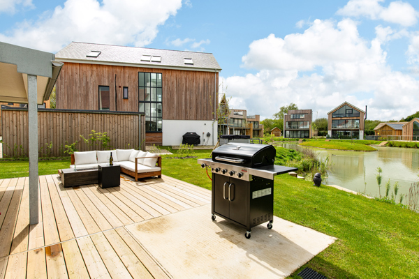 To the back of the property is a decking area complete with a gas BBQ, corner sofa and coffee table. One of the best features of this property is the outdoor coffee table which has a built-in gas fireplace providing a great setting to relax in during the evenings. New for Autumn 2024, a hot tub has been installed, a perfect place to watch the sun go down from.