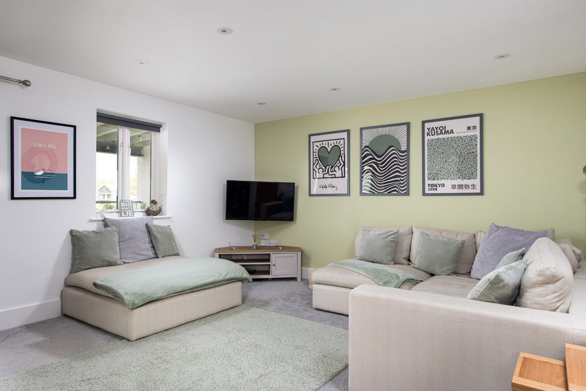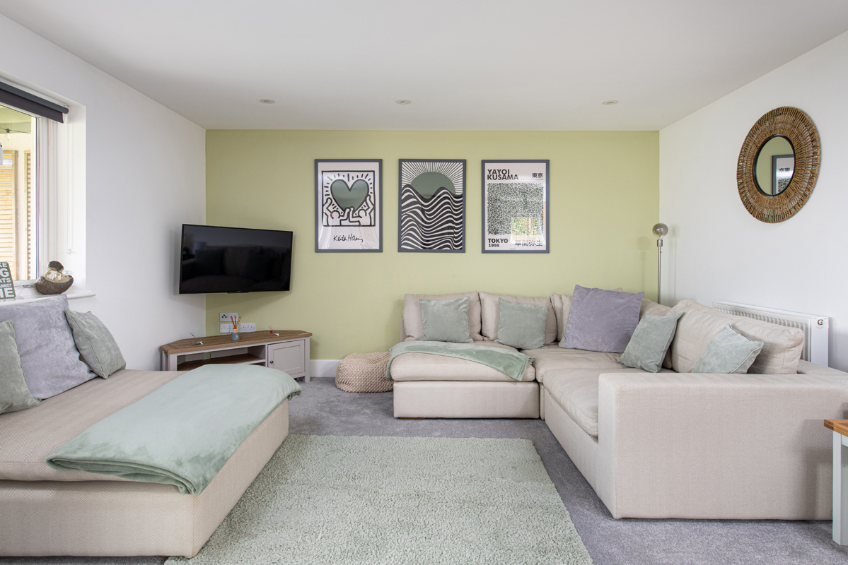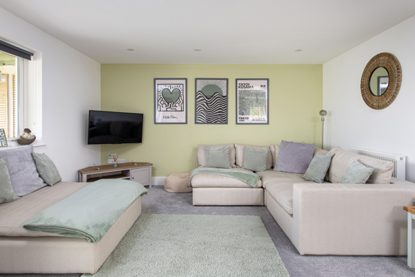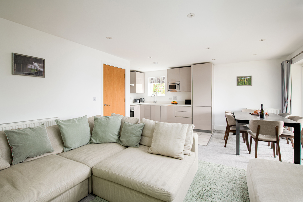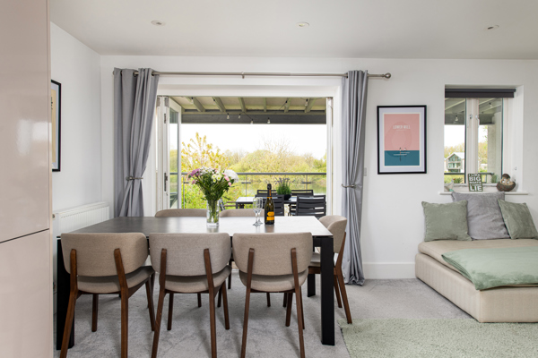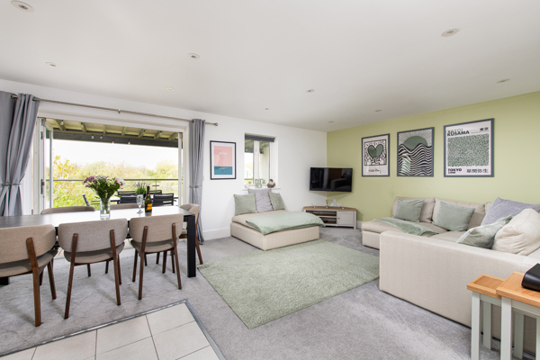 The living/dining area and kitchen are comfortable and modern and fully stocked with cutlery and crockery for six people.