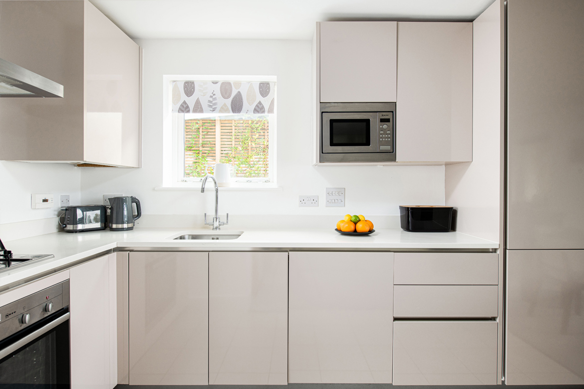 The kitchen boasts a built-in fridge/freezer, single oven, and hob. Microwave, toaster, kettle, and Bosch coffee machine. Fully equipped to accommodate six guests.